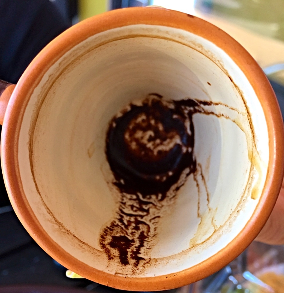 [Tasseography (also known as tasseomancy or tassology) is a divination or fortune-telling method that interprets patterns in tea leaves, coffee grounds, or wine sediments…Divination attempts to gain insight into the natural world through intuitive interpretation of synchronistic events. -Wikipedia] (Don’t judge that I used Wikipedia.)