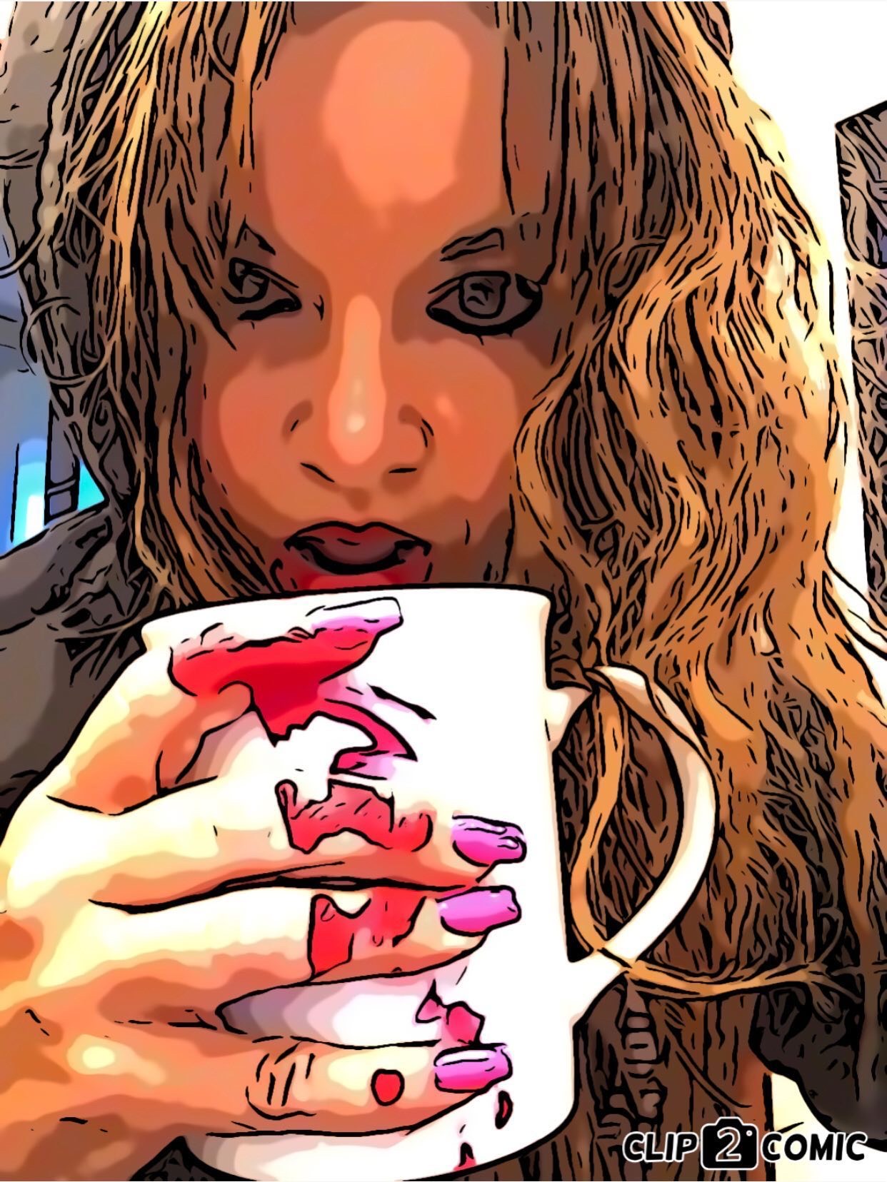 I sit beside you, my father, pulling out my tumbler of steaming goodness, I inhale and release a satisfying breath. I dip the tip of the tongue and squeeze some blood onto my fingers. I toss the tongue, stepping onto it with my stiletto heel and swirl the coffee with my fingers and lick them clean.